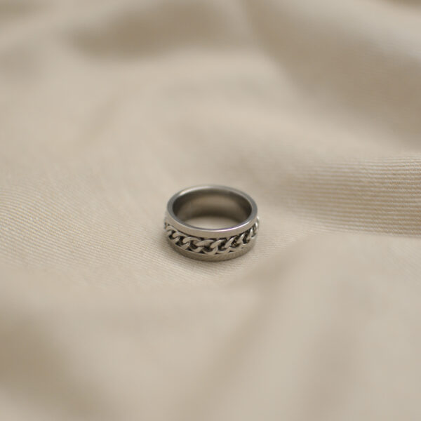 Titanium chain ring, with rotatable chain. Unisex.