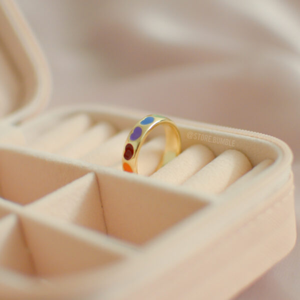 Enamel ring with rainbow hearts. Adjustable.