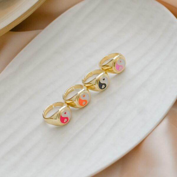 Adjustable golden signet ring, with Yin & Yang design.