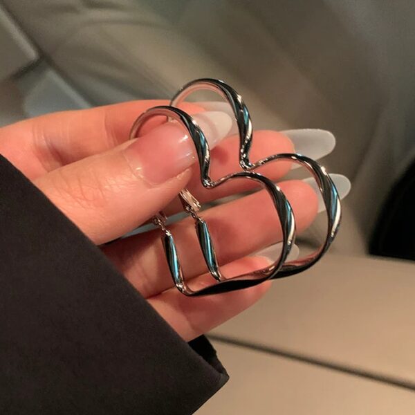 Delicate silver heart shaped hoops. A twist on the classic everyday staple.