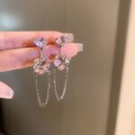 Silver and pink earrings with chain.