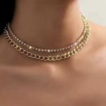 Double layered necklace with chain and rhinestones