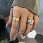 Chunky adjustable ring made from stainless steel. Tarnish resistant and waterproof.