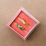 Adjustable white and sea-green enamel rings with gorgeous golden detailing.